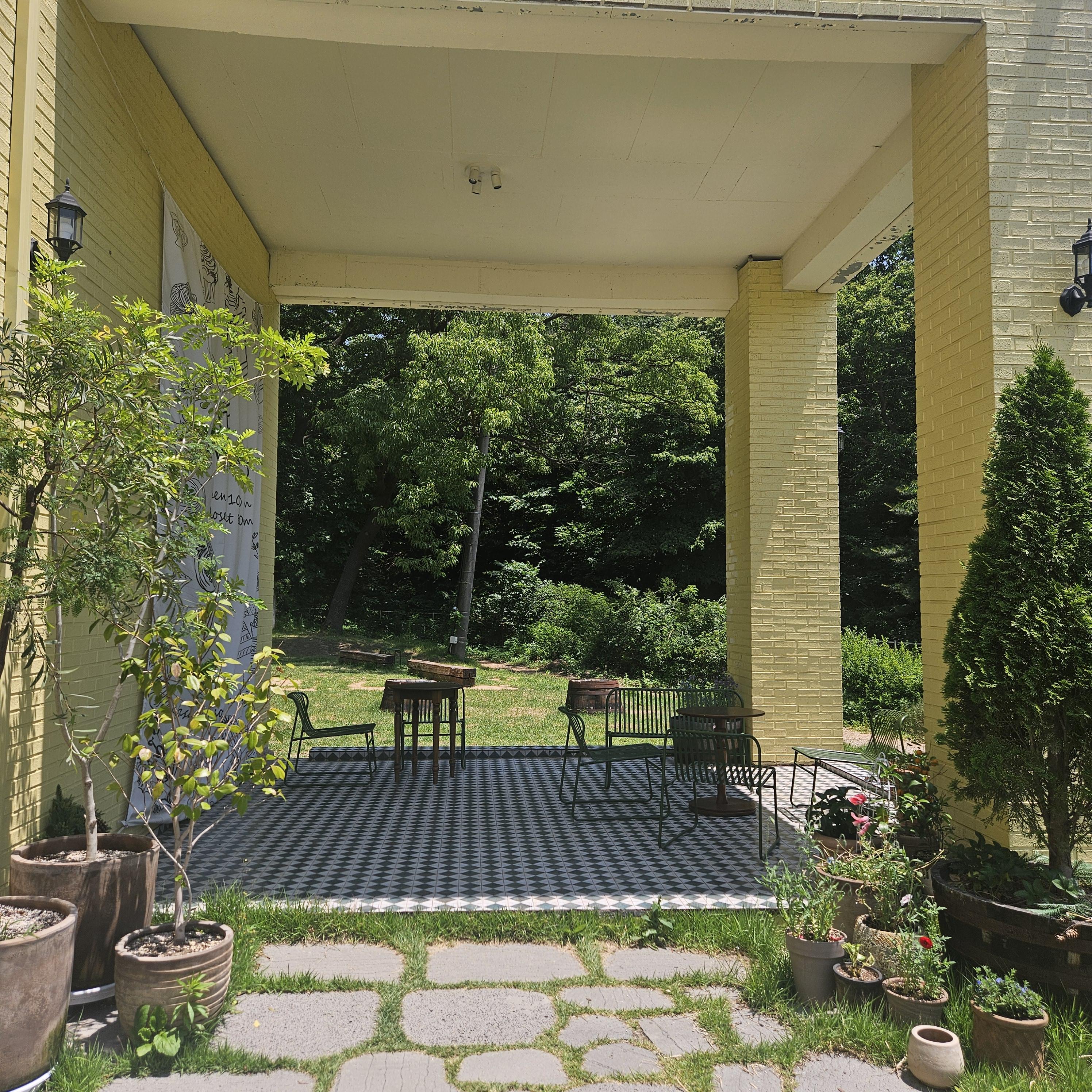 2층 루프탑에서 내려다본 1층 바깥 정원 쪽